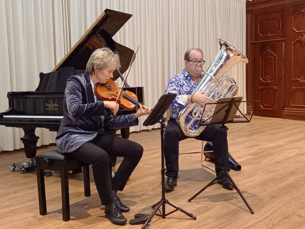 Op zondag 9 november was er weer een optreden van het duo Heleen Hulst op viool en Gerard Bouwhuis op de vleugel en deze keer als toegevoegd muzikant Dave Kutz, op tuba. U leest het goed: tuba.