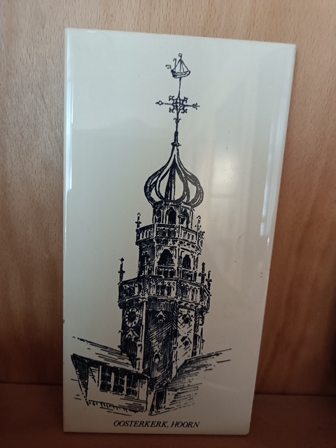 In het verenigingsgebouw van Oud Hoorn ontdekte ik onlangs een tegeltje met een afbeelding van de Oosterkerk, zie foto.