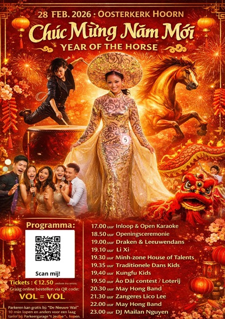 Het Vietnamese Nieuwjaar, ook wel Tết genoemd, wordt dit jaar groter en gezelliger gevierd dan ooit tevoren. Op zaterdag 28 februari 2026 vormt de sfeervolle Oosterkerk in Hoorn het decor voor een kleurrijk cultureel feest waar iedereen welkom is.