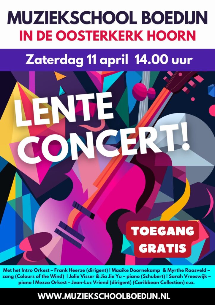 Het Mezzo Orkest, onder leiding van Jean-Luc Vriend, brengt muziek uit de Caribbean Collection, met lichte en vrolijke klanken die mooi bij het voorjaar passen. Daarnaast zijn er nog meer leerlingen die deze middag optreden met verschillende instrumenten en muziekstijlen.