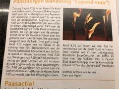 De Raad van Kerken Hoorn, Zwaag en Blokker organiseert voor het ochtendgloren een Paasmorgen wandeling “Lopend Vuur’. In verband met de zonsopkomst is de start om zeven uur in de Oosterkerk. De kerk is open vanaf 06.45 uur.